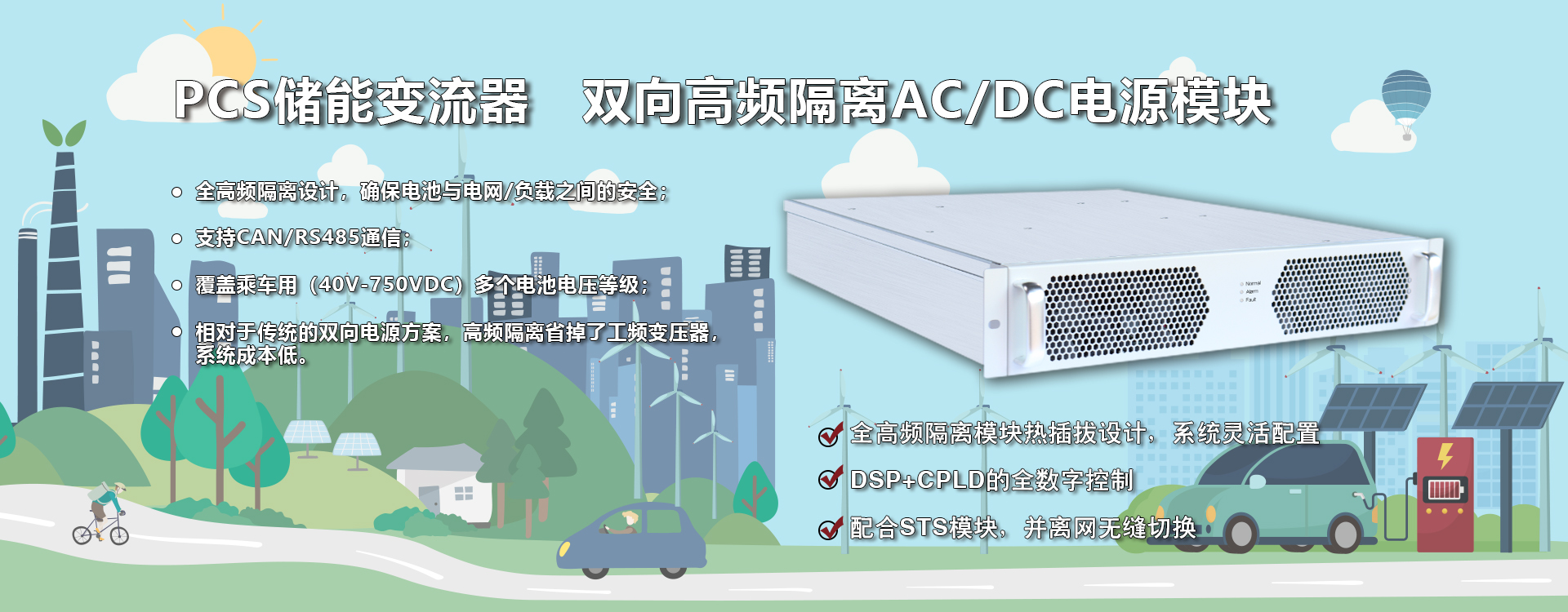 三相五線制(3W+N+PE),支持離網(wǎng)不平衡負(fù)載; 配合PCS模塊,可實現(xiàn)并離網(wǎng)無縫切換,確保重要負(fù)載不間斷供電; 模塊化設(shè)計,安裝與維護(hù)簡單; 模塊結(jié)構(gòu)緊湊,功率密度高。